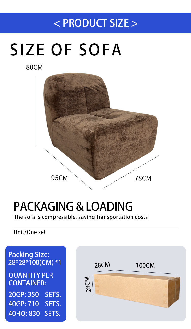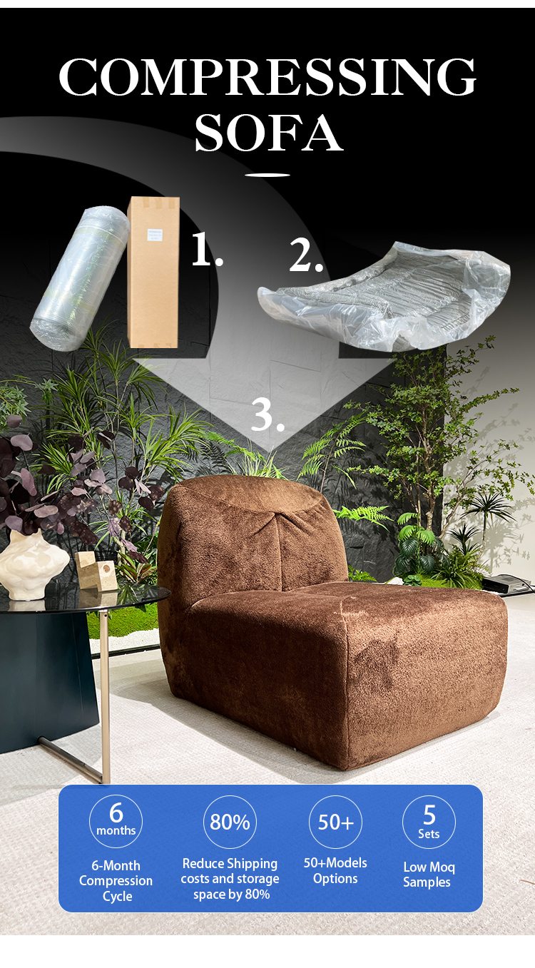 S228 modern compressed sofa furniture sponge velvet fabric customize vacuum compression lounge chair